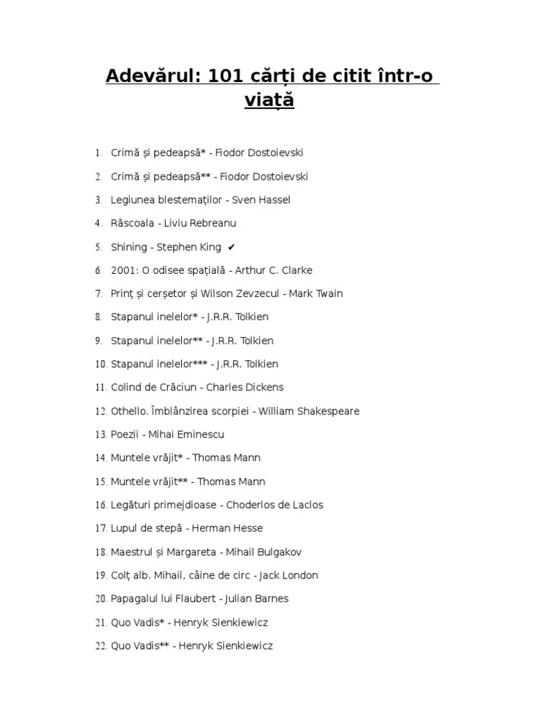 După colecţia de succes 100 de cărţi pe care trebuie să le ai în … Colectia completa adevarul 101 (seria roşie), de diverşi autori. Wilson zevzecul (adevarul) in stoc pret: 41 rijen · biblioteca adevărul 101. După colecţia de succes 100 de cărţi pe care trebuie să le ai în … Imblanzirea scorpiei (adevarul) in stoc pret:. După colecţia de succes 100 de cărţi pe care trebuie să le ai în …